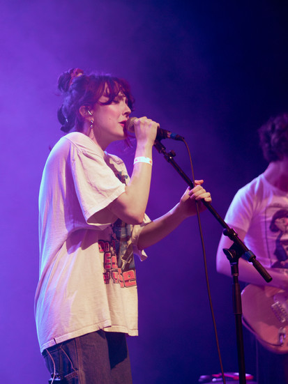 The cheers were boisterous as Annie and her band emerged on stage. She jumped straight into songs off her new debut album Super Pedestrian. There is always a buzz when you are at a show in a place that is mentioned in a song. “Six men, seven dogs circled up in a big garage / We talked as we pulled off the interstate in Colorado,” was sung powerfully by her devoted fans who have spent the last 3ish weeks since the release of the song, making sure they had the lyrics ready to go for showtime. Dirusso expressed her admiration of the crowd for getting the lyrics down in such a quick turnaround time, and the audience watched in awe, bursting with anticipation for what song was coming next. Dirusso has been releasing music since 2018 with the release of the track “Don’t Swerve”. Her song “Nine Months,” blew up on TikTok, and she has continued to continue her viral success with tracks like “Coming Soon,” and more recently, her single “Legs.” She played through most songs off her recent album, along with some deeper cuts like "Emerson" and "Hybrid" for the long-time fans. She proceeded to get vulnerable with the crowd, sharing a story from her childhood time spent in Denver. She dove into her relationship with her mother and the stupid boyfriend her mother was dragging around at the time, as she recalls a specific memory. After eating a meal at a local Chinese restaurant and exchanging fortune cookies with one another, a terrible feeling came over both her and her mother. When Annie woke up the next day, she looked down only to see that her once small and young hands had been replaced by 55 year old cracked and fragile ones. Sprinting to the mirror only to reveal she and her mother have SWITCHED BODIES! By this point most had gathered she was in fact talking about the 2003 classic, ‘Freaky Friday’ starring Lindsey Lohan and Jamie Lee Curtis, to introduce her song “Good Ass Movie”. Happy early April Fool’s to us letterbox users! Spectators on the barricade had proactively brought a copy of a good ass, but devastating, ‘The Eternal Sunshine of the Spotless Mind’ to share with Dirusso during the bridge where she lists out her favorite movies over the years. Through the show, Dirusso was cracking jokes and sharing actual bits of her life to keep the crowd engaged, as if she needed any help with that, making the show feel like both a concert and hilarious comedy set wrapped into one. The front most section was chock full of people passionately dancing and singing with their friends, that captivated the attention of the performers. Dirusso kept sharing energy with a specific group of fans that were having the most incomparable experience.